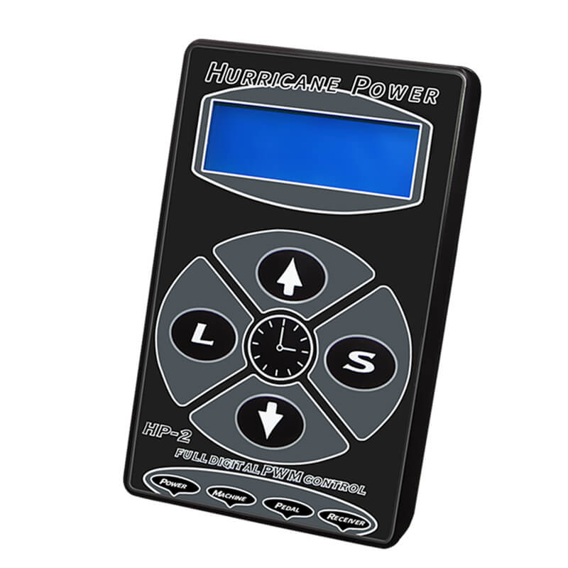 Блок питания для тату машинки HP-2 Hurricane Power используется для подачи питания на устройство. Татуировочное оборудование выполнено из прочного пластика черного матового цвета. На лицевой панели находится цифровой экран с подсветкой, на который выводится подаваемое на машинку ток и напряжение, а также нагрузка, скорость. Настройки выставляются при помощи кнопок на корпусе. Доступно 2 режима работы, регулировка частоты прокола, изменение мощности. К блоку питания можно подключить педаль, с помощью которой можно управлять машинкой. Есть энергонезависимая память, в которой сохраняются ключи и настройки для 4 машинок. Поддерживается таймер для контроля рабочего процесса.